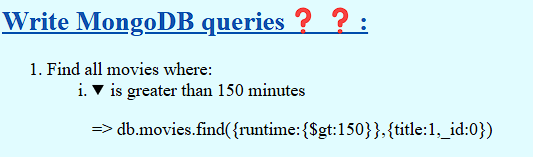 => db.movies.find({runtime:{$gt:150}},{title:1,_id:0})